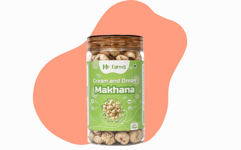 Mr. Farms Cream and Onion Makhana 70g | Healthy Roasted Foxnuts | High Fiber Snack | Gluten Free | No Palm Oil