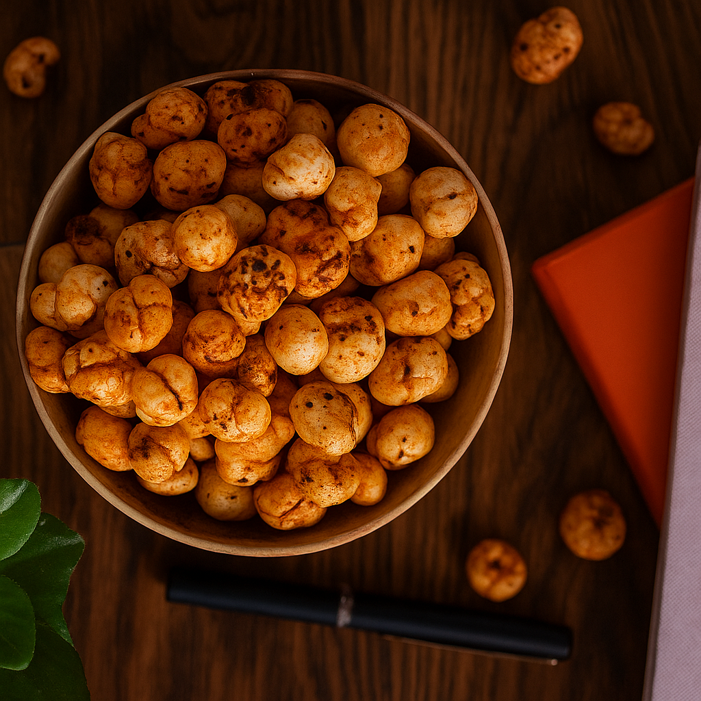 Crafted from premium-quality lotus seeds, our Cream & Onion Makhana is not just tasty but also wholesome. Roasted to perfection with minimal oil, it’s a healthier alternative to fried snacks—rich in protein, gluten-free, and packed with antioxidants.